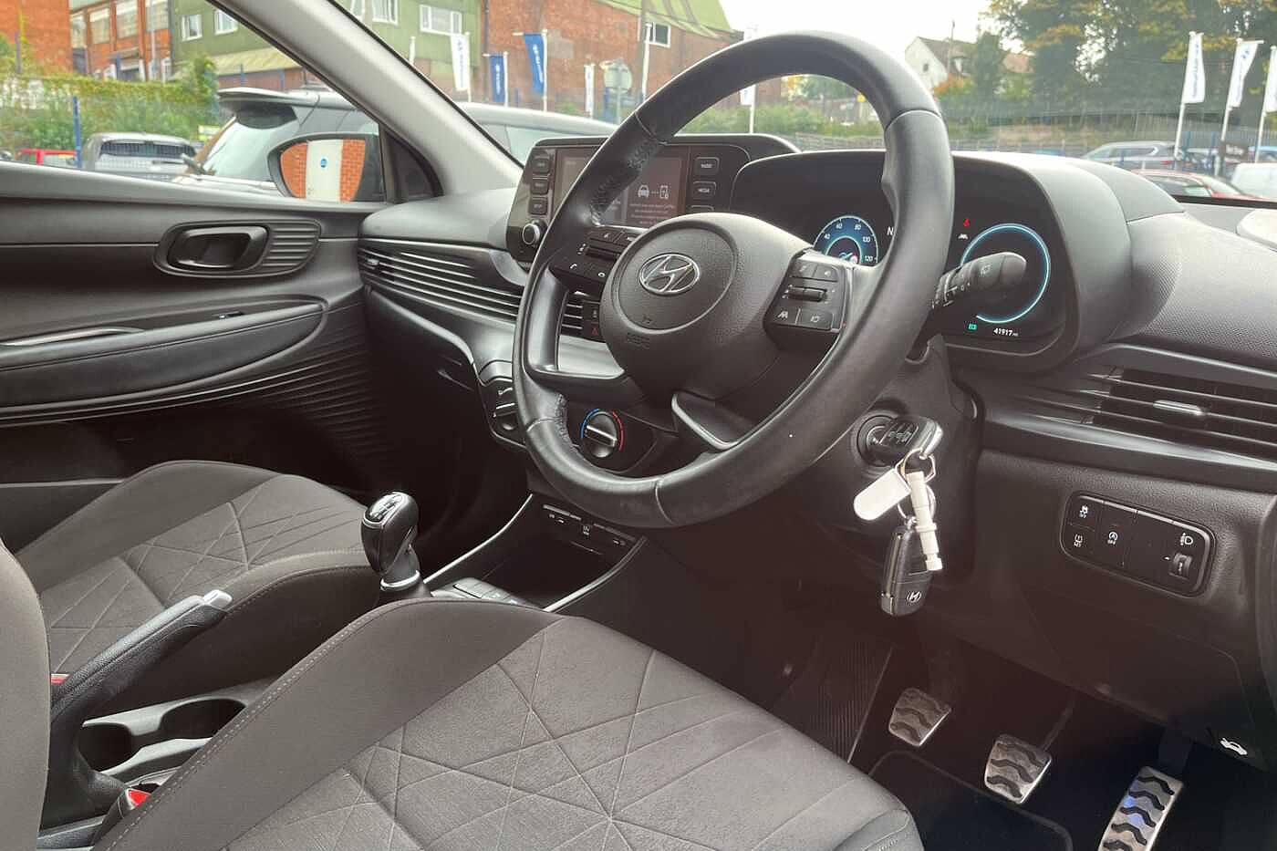 Here at Paul Rigby Hyundai Bromsgrove, we are proud to offer this stunning prepared Hyundai Bayon SE Connect. Complete with full Hyundai service history carried out on 25/03/2023 @ 10,794, 13/02/2024 @ 21,337, 19/12/2024 @ 32,050 and 10/10/2025 @ 41,670. The Bayon is small on the outside but big on the inside with its superbly crafted crossover SUV design to make a lasting impression, furthermore standard across the range Bayon's are fitted with the efficient 48volt mild hybrid powertrain as standard. With the 1 litre T-GDI petrol engine and 48volt mild hybrid system the Bayon will return an excellent combined fuel consumption figure of around 53.3mpg. Visibility all round in the Bayon is excellent and combined with the higher seating position it provides a wonderful driving position added with the sporty design elements allowing the Bayon to be eye catching and stand out from the crowd. Boot space comes in at 334 litres while rear passengers have excellent legroom for a comfortable ride. Some of the other safety and tech features on the Bayon SE Connect include, rear guidance parking camera, rear parking sensors, apple car play & android auto, lane departure warning system, lane keep assist, drive modes, cruise control and many more. The Paul Rigby Group has been passionate about customers, environment and standing out within the automotive industry since 2010. Our Hyundai Branch which has been a family business since 1996, that has gone above and beyond to make sure our customers have the best possible experience throughout their purchase and beyond. Drop by Hyundai Bromsgrove and our devoted sales and service department will be sure to fulfil any enquires you may have.