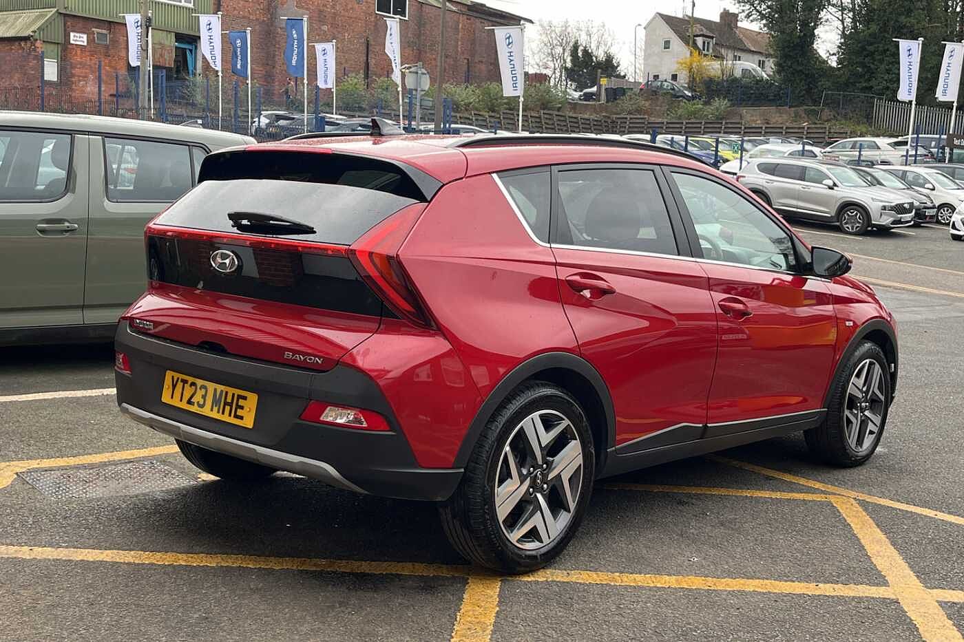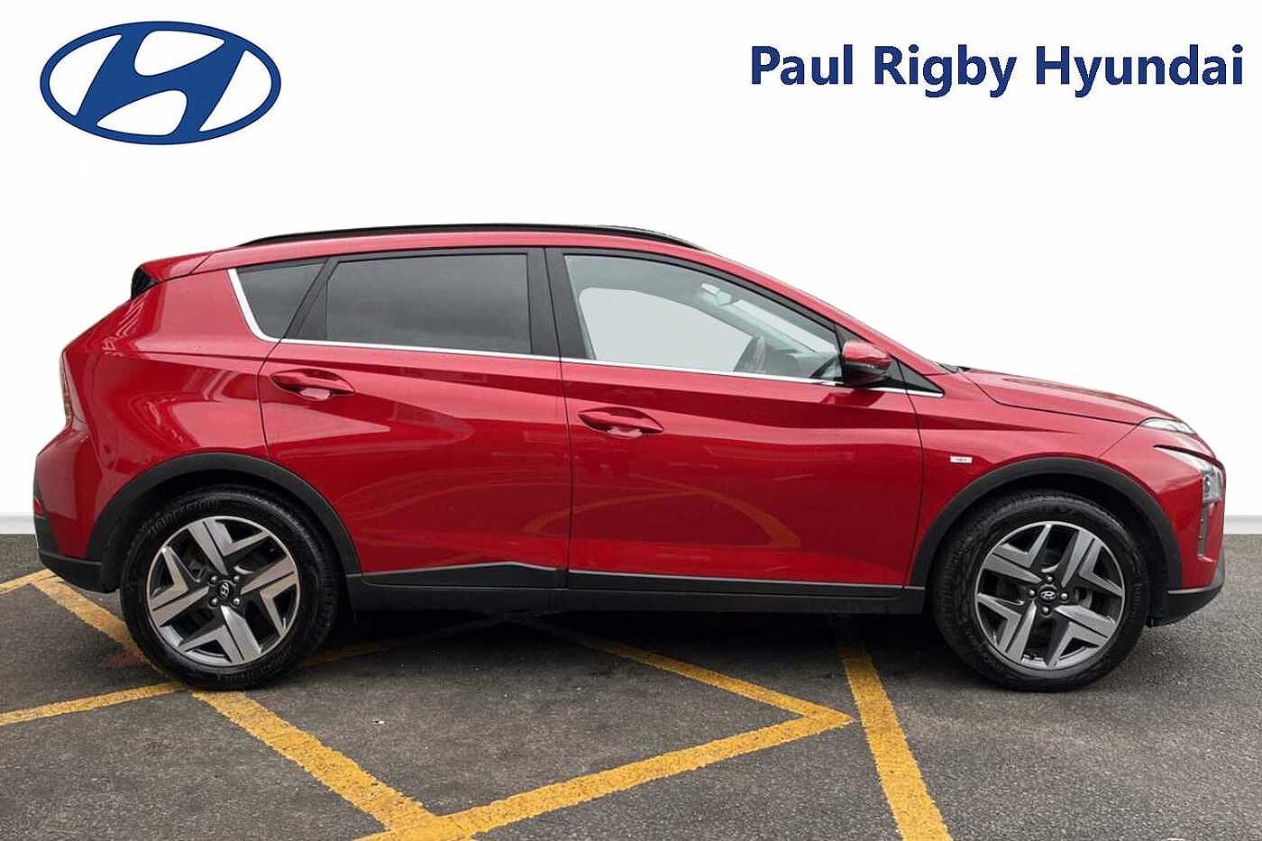 Here at Paul Rigby Hyundai Bromsgrove, we are proud to offer this stunning prepared Hyundai Bayon Premium for sale finished in the sensational Dragon Red. The Bayon is small on the outside but big on the inside with its superbly crafted crossover SUV design to make a lasting impression, furthermore standard across the range Bayon's are fitted with the efficient 48volt mild hybrid powertrain. With the 1 litre T-GDI petrol engine and 48volt mild hybrid system the Bayon will return an excellent combined fuel consumption figure of around 53.3mpg. Visibility, all around, in the Bayon is excellent and combined with the higher seating position it provides a wonderful driving position added with the sporty design elements allowing the Bayon to be eye catching and stand out from the crowd. Boot space comes in at 334 litres while rear passengers have excellent legroom for a comfortable ride. Some of the other safety and tech features on the Bayon Premium include, rear guidance parking camera, rear parking sensors, apple car play & android auto, lane departure warning system, lane keep assist, drive modes, cruise control and many more. The Paul Rigby Group has been passionate about customers, environment and standing out within the automotive industry since 2010. Our Hyundai Branch which has been a family business since 1996, that has gone above and beyond to make sure our customers have the best possible experience throughout their purchase and beyond. Drop by Hyundai Bromsgrove and our devoted sales and service department will be sure to fulfil any enquires you may have.