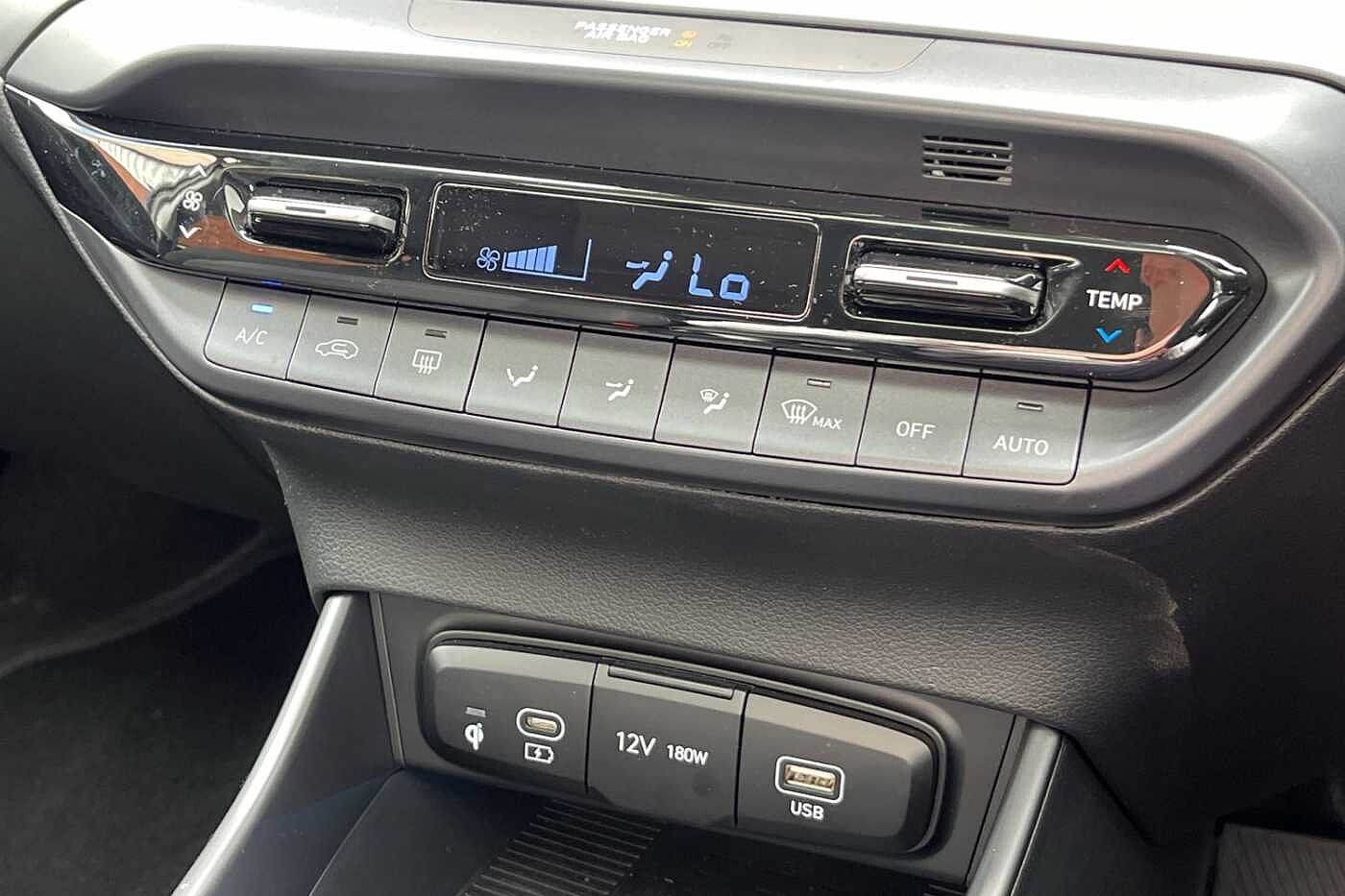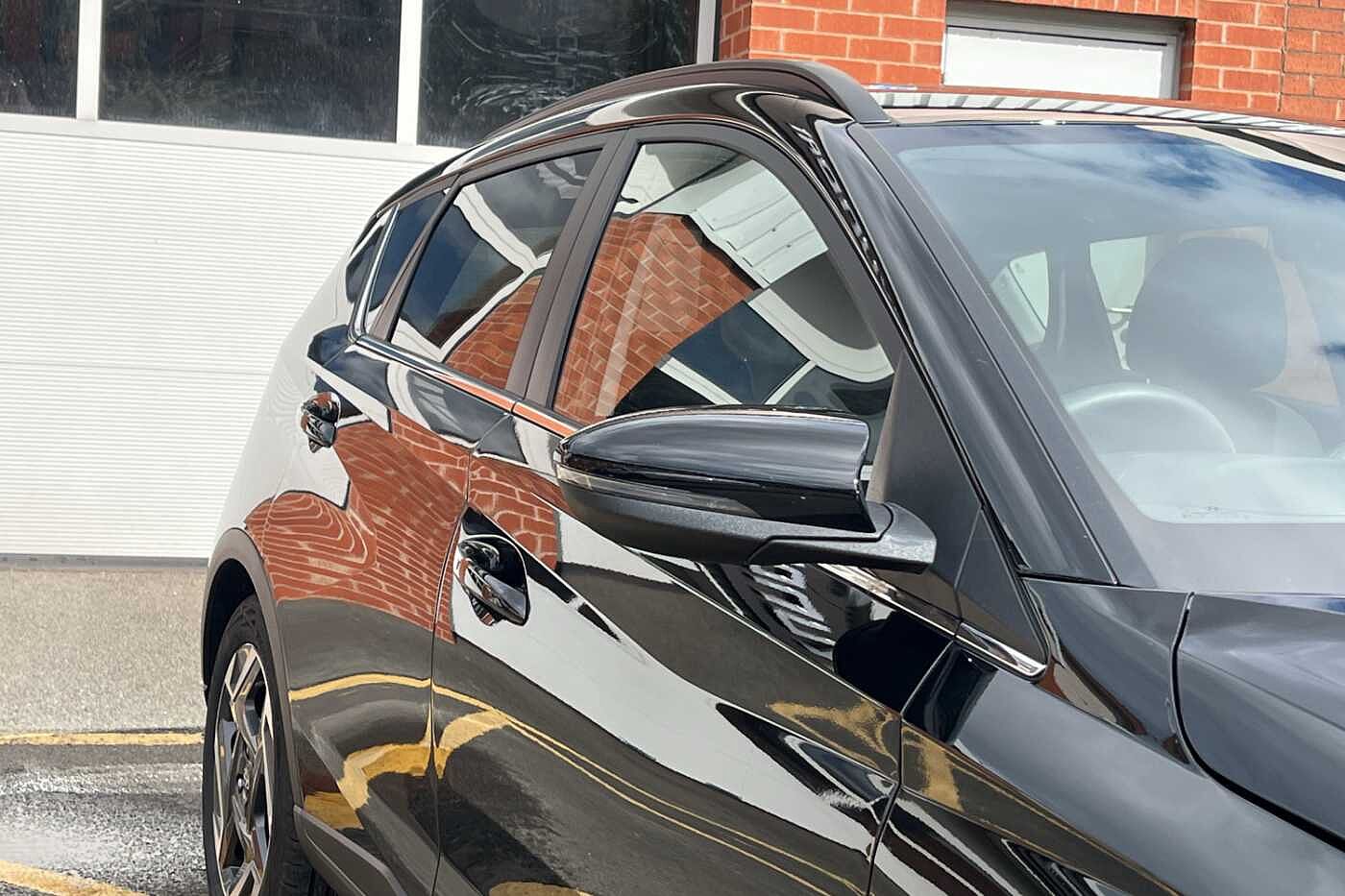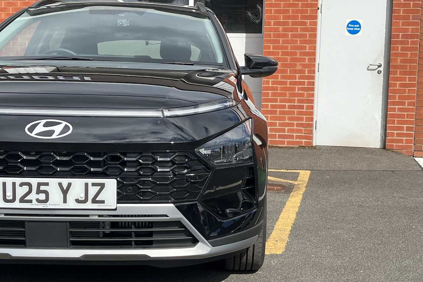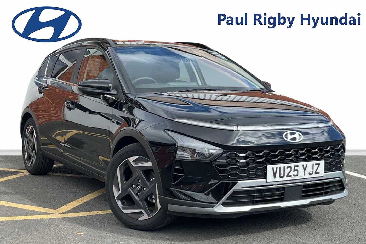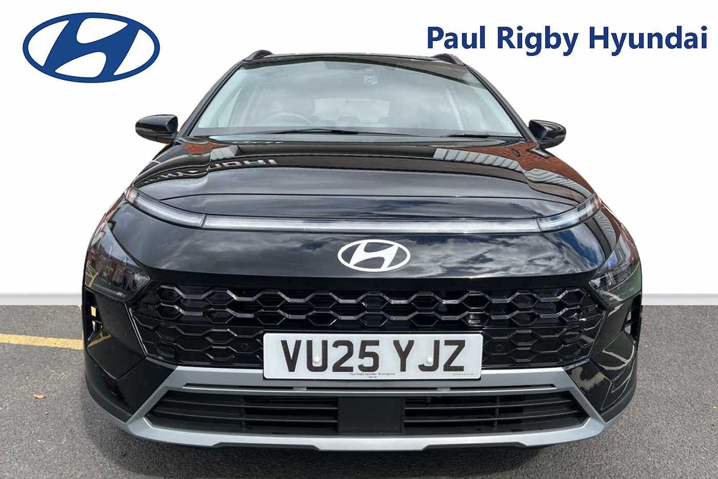 Here at Paul Rigby Hyundai Bromsgrove, we are proud to offer this stunningly prepared Bayon Ultimate finished in the sensational Phantom Black. The Bayon's stylish and sleek design elegantly combines Hyundai SUV heritage with a hint of sportiness but providing the higher seating position and great all round visibility. This Bayon Ultimate is fitted with a 1 litre turbo charged petrol engine that produces 100ps and mated with a 6 speed manual gearbox. The Bayon provides an engaging driving experience with plenty of power throughout the gears, tackles anything you throw at it thanks to its precise steering and elevated ride height. The interior is fitted with comfortable black cloth seats that are heated and perfect winter edition heated steering wheel, ambient lighting has been added to the cabin that adds a luxurious touch. The Bayon provides lots of space in the back and has a highly practical boot space of 411 litres and 1205 litres with the rear seats down. Some of the features on this Ultimate model include 10.25' touchscreen nav, wireless phone charging pad, Bose premium sound system, apple car play & android auto, Bluetooth connectivity, lane departure warning system, rear guidance camera, rear parking sensors and Hyundai Blue Link. The Paul Rigby Group has been passionate about customers, environment and standing out within the automotive industry since 2010. Our Hyundai Branch which has been a family business since 1996, that has gone above and beyond to make sure our customers have the best possible experience throughout their purchase and beyond. Drop by Hyundai Bromsgrove and our devoted sales and service department will be sure to fulfil any enquires you may have.