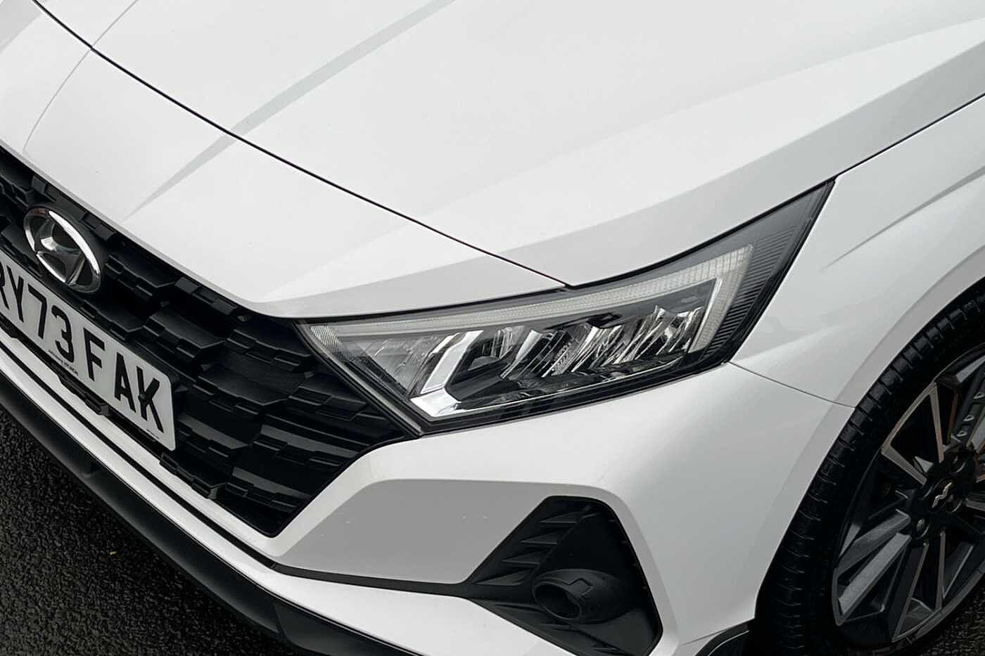 Here for sale at Paul Rigby Hyundai Bromsgrove, we are proud to offer this stunningly prepared Hyundai i20 N-Line DCT finished in the gleaming Atlas White. The N-Line has been given a splash of the N performance treatment on both the exterior and interior. Featuring a dynamic new front bumper, textured cascading grille, and an enhanced sleek rear bumper. This does not only give the N-Line it's energetic look but also improves aerodynamic performance. This specific i20 N-Line is fitted with the 7 speed DCT automatic transmission, the output of the N-Line is 120ps which comes from the higher powered 1 litre T-GDI petrol engine and 48volt mild hybrid system. The N-Line effortlessly puts the power down thanks to the 7 speed dual clutch transmission and will also return excellent fuel consumption figures with a combined average return of 53.3mpg. Interior features a leather N-Line steering wheel, specially designed N-Line gear shift with red inserts, N-Line sporty seats with bigger bolsters and side cushions for a comfortable yet engaged driving experience. Some of the smart tech and safety features includes on the i20 N-Line include rear guidance camera, cruise control, rear parking sensors, lane keep assist, lane departure warning, 10.25' touchscreen nav, 10.25' digital drivers cluster, Apple car play & Android auto, plus many more. The Paul Rigby Group has been passionate about customers, environment and standing out within the automotive industry since 2010. Our Hyundai Branch which has been a family business since 1996, that has gone above and beyond to make sure our customers have the best possible experience throughout their purchase and beyond. Drop by Hyundai Bromsgrove and our devoted sales and service department will be sure to fulfil any enquires you may have.