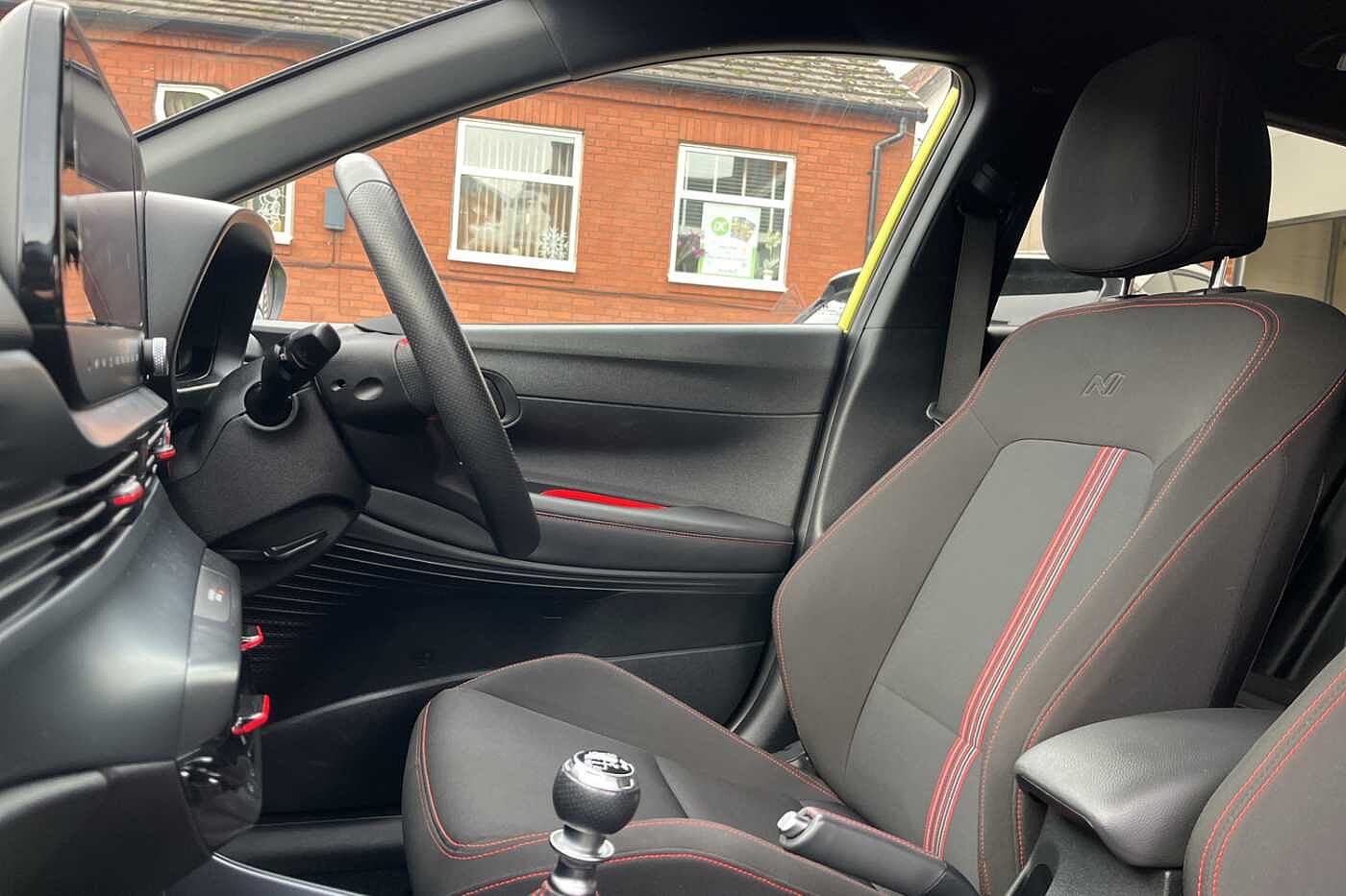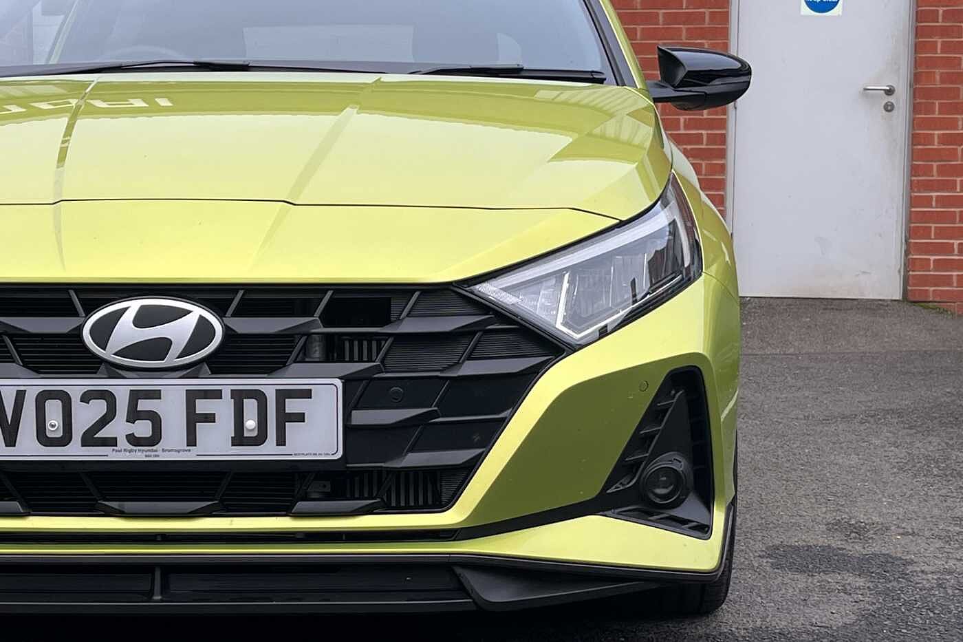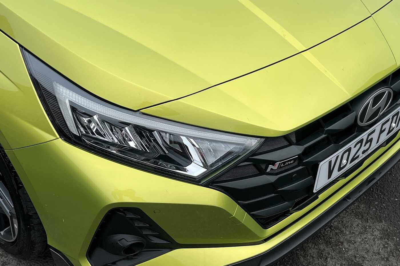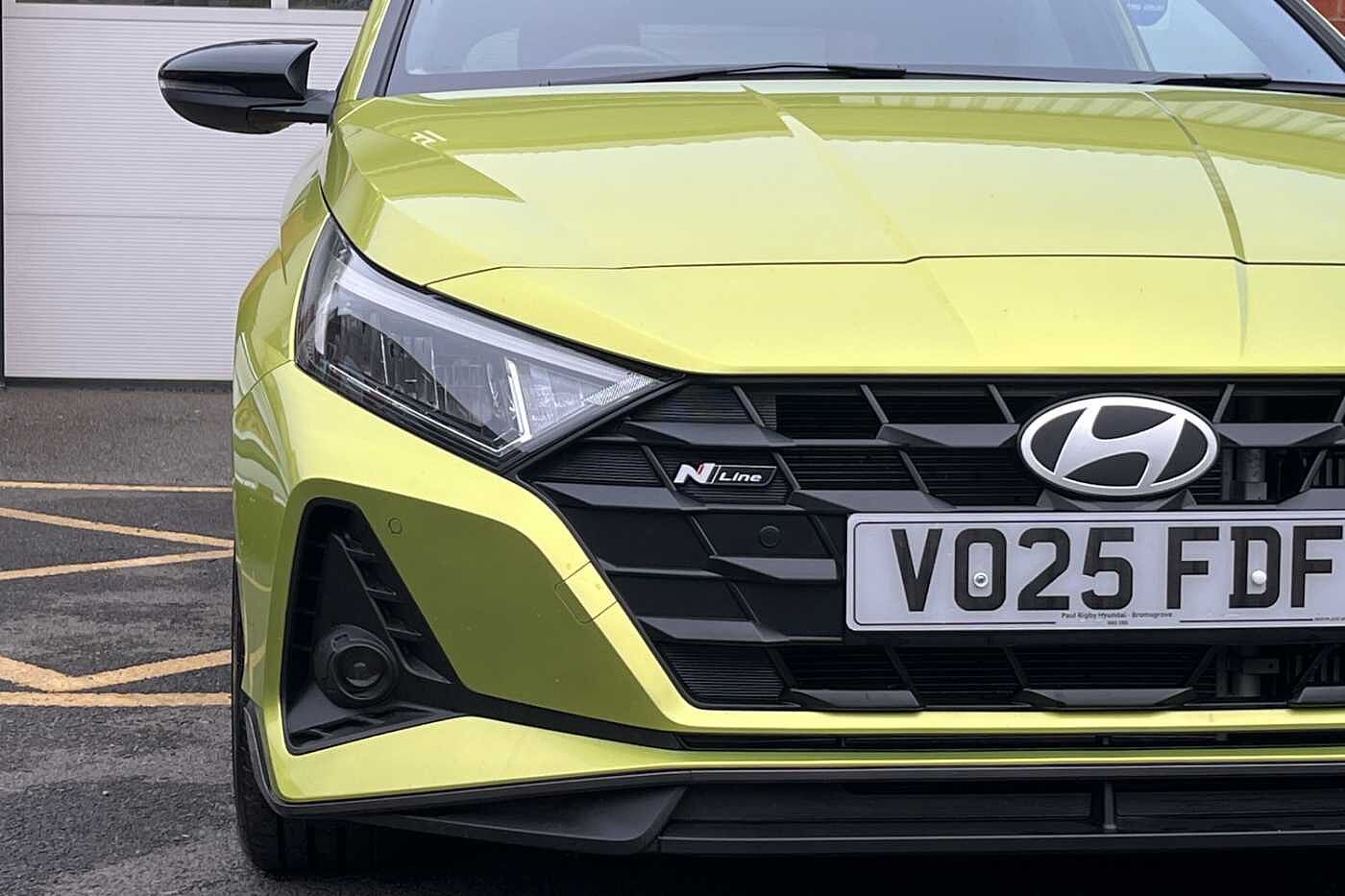 Here for sale at Paul Rigby Hyundai Bromsgrove, we are proud to offer this stunningly prepared Hyundai i20 N-Line S finished in the striking Lucid Lime. The N-Line has been given a splash of the N performance treatment on both the exterior and interior. Featuring a dynamic new front bumper, textured black cascading grille, and an enhanced sleek rear bumper. This does not only give the N-Line it's energetic look but also improves aerodynamic performance. This specific i20 N-Line is fitted with the 6 speed manual transmission, the output of the N-Line is 120ps which comes from the higher powered 1 litre T-GDI petrol engine. The N-Line effortlessly puts the power down thanks to the 6 speed manual transmission and will also return excellent fuel consumption figures with a combined average return of 52.3mpg. Interior features a leather N-Line steering wheel, specially designed N-Line gear shift with red inserts, N-Line sporty seats with bigger bolsters and side cushions for a comfortable yet engaged driving experience. Some of the smart tech and safety features includes on the i20 N-Line include rear guidance camera, cruise control, front and rear parking sensors, lane keep assist, lane departure warning, 10.25' touchscreen nav, 10.25' digital drivers cluster, Apple car play & Android auto, plus many more. The Paul Rigby Group has been passionate about customers, environment and standing out within the automotive industry since 2010. Our Hyundai Branch which has been a family business since 1996, that has gone above and beyond to make sure our customers have the best possible experience throughout their purchase and beyond. Drop by Hyundai Bromsgrove and our devoted sales and service department will be sure to fulfil any enquires you may have