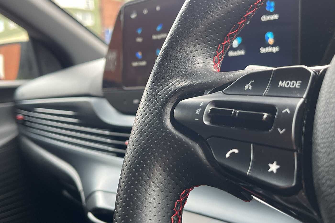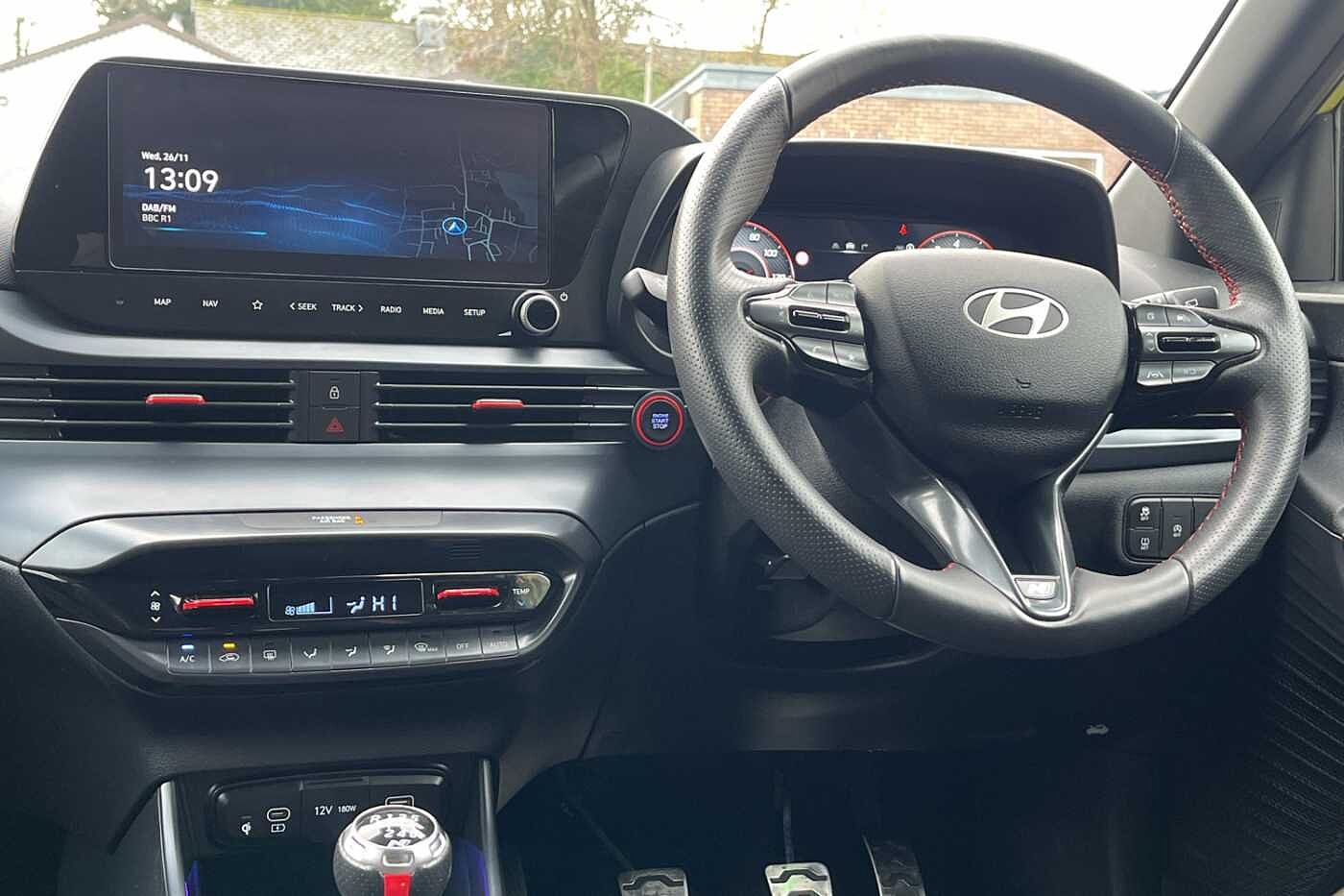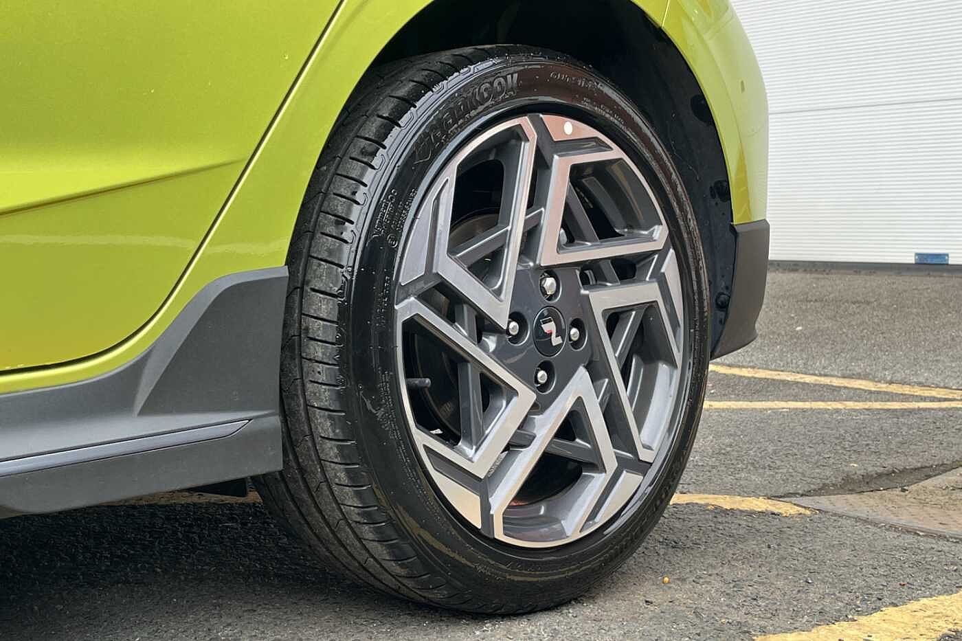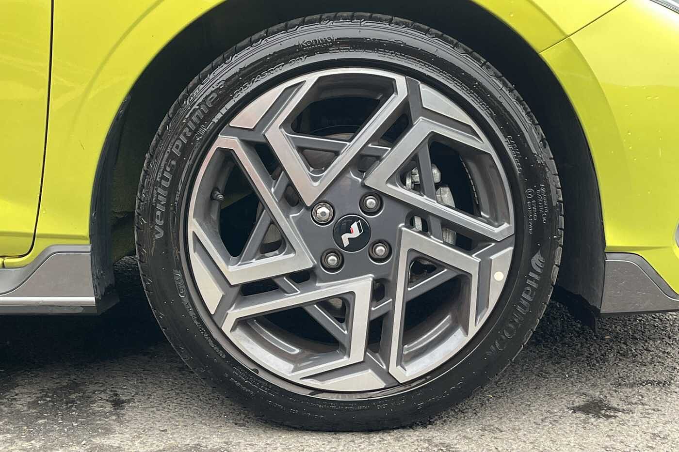 Here for sale at Paul Rigby Hyundai Bromsgrove, we are proud to offer this stunningly prepared Hyundai i20 N-Line S finished in the striking Lucid Lime. The N-Line has been given a splash of the N performance treatment on both the exterior and interior. Featuring a dynamic new front bumper, textured black cascading grille, and an enhanced sleek rear bumper. This does not only give the N-Line it's energetic look but also improves aerodynamic performance. This specific i20 N-Line is fitted with the 6 speed manual transmission, the output of the N-Line is 120ps which comes from the higher powered 1 litre T-GDI petrol engine. The N-Line effortlessly puts the power down thanks to the 6 speed manual transmission and will also return excellent fuel consumption figures with a combined average return of 52.3mpg. Interior features a leather N-Line steering wheel, specially designed N-Line gear shift with red inserts, N-Line sporty seats with bigger bolsters and side cushions for a comfortable yet engaged driving experience. Some of the smart tech and safety features includes on the i20 N-Line include rear guidance camera, cruise control, front and rear parking sensors, lane keep assist, lane departure warning, 10.25' touchscreen nav, 10.25' digital drivers cluster, Apple car play & Android auto, plus many more. The Paul Rigby Group has been passionate about customers, environment and standing out within the automotive industry since 2010. Our Hyundai Branch which has been a family business since 1996, that has gone above and beyond to make sure our customers have the best possible experience throughout their purchase and beyond. Drop by Hyundai Bromsgrove and our devoted sales and service department will be sure to fulfil any enquires you may have