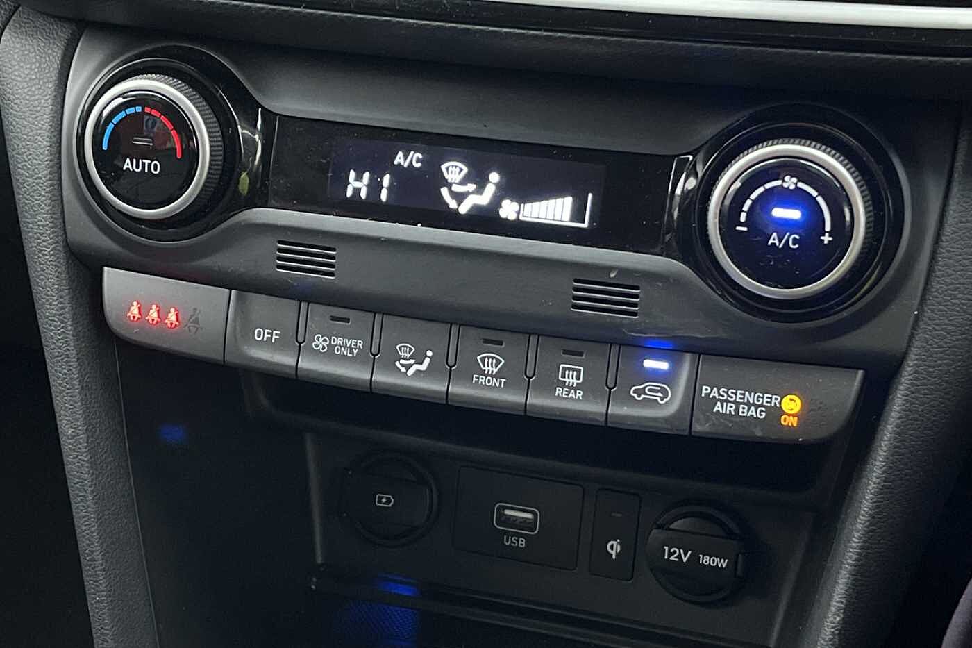 Here at Paul Rigby Hyundai Bromsgrove, we are proud to offer you this superbly prepared Hyundai Kona Premium SE Hybrid. The Kona is impressive from every angle, with sculptured lines and chiselled edges, full of the latest smart tech and safety features. This Premium SE model is fitted with a 1.6 GDI hybrid petrol engine that produces 138bhp, the electric motor works efficiently with the engine allowing for it to automatically choose between them for the best fuel efficiency results and quickly recharges the 1.56kWh battery from the help of the regenerative breaking. Fuel figures the Kona Premium SE will return a combined average of around 56.6mpg. The interior is fitted with a superbly comfortable black cloth seats with excellent quality materials, driving position allows for clear visibility of the road, and lots of adjustability, spacious rear seats will allow passengers to be relax and enjoy the ambient cabin of the Kona.  Practicality wise, plenty of storage space with large door bins, armrest compartment and a boot space of 361 litres, which expands to 1143 litres with the rear seats down. Some of the latest smart tech and safety features include forward collision assist, lane keep assist, rear parking camera, front and rear parking sensors, power folding door mirrors, smart cruise control, SOS roadside assistance button, krell premium sound, heated leather steering wheel, wireless phone charging pad, apple car play & android auto, 10.25' touchscreen nav and many more.  The Paul Rigby Group has been passionate about customers, environment and standing out within the automotive industry since 2010. Our Hyundai Branch which has been a family business since 1996, that has gone above and beyond to make sure our customers have the best possible experience throughout their purchase and beyond. Drop by Hyundai Bromsgrove and our devoted sales and service department will be sure to fulfil any enquires you may have.