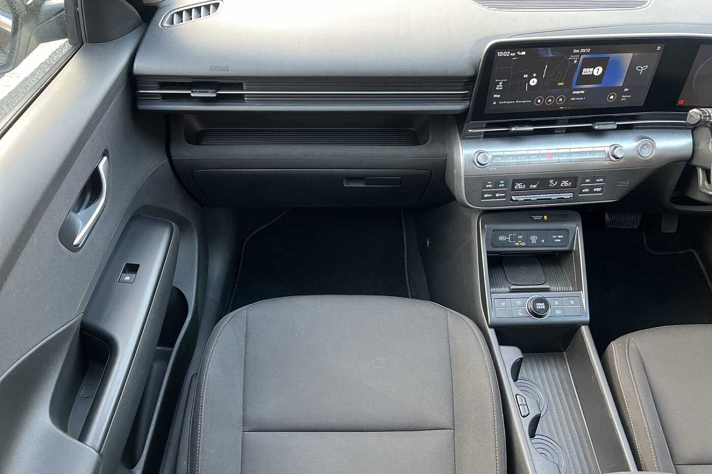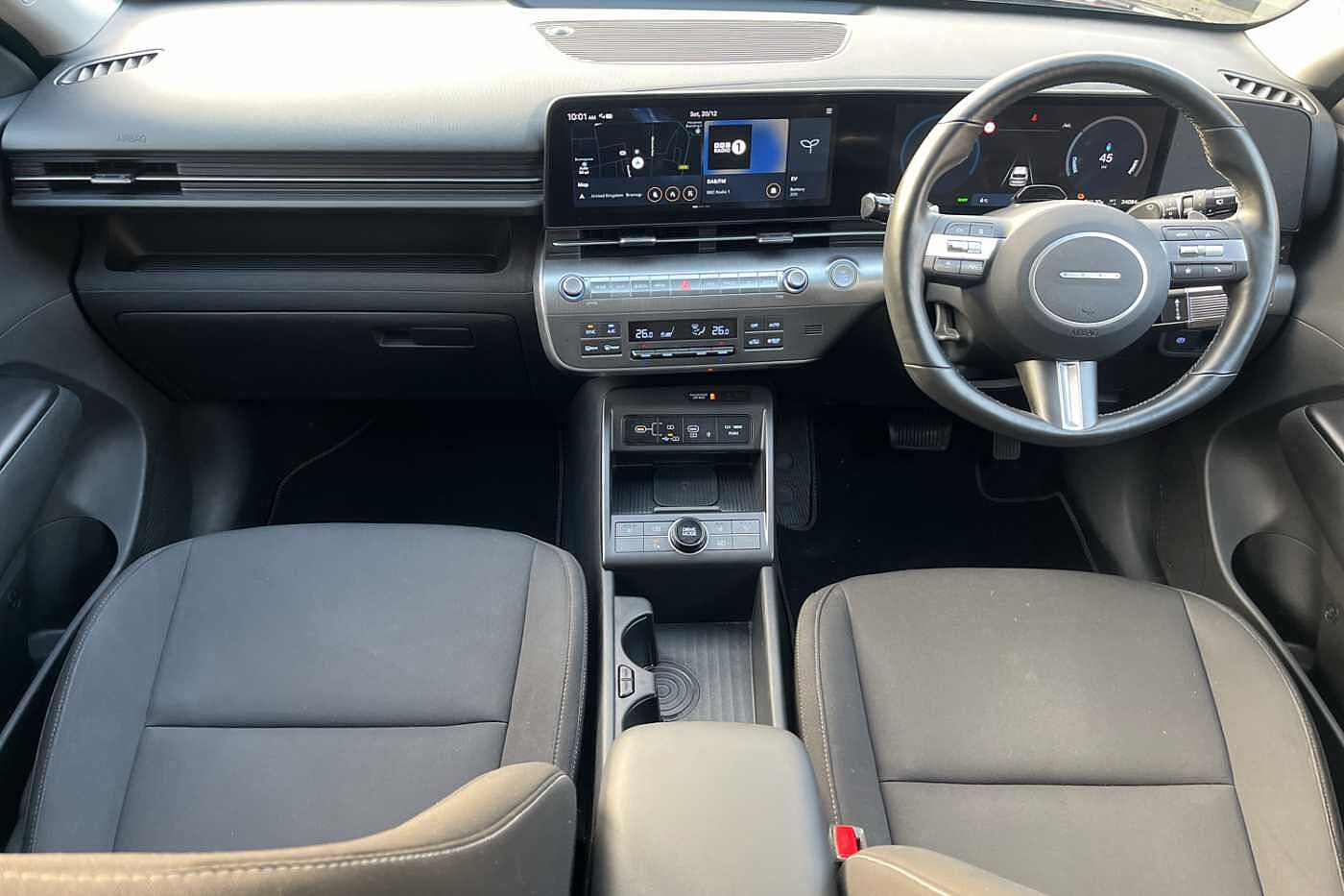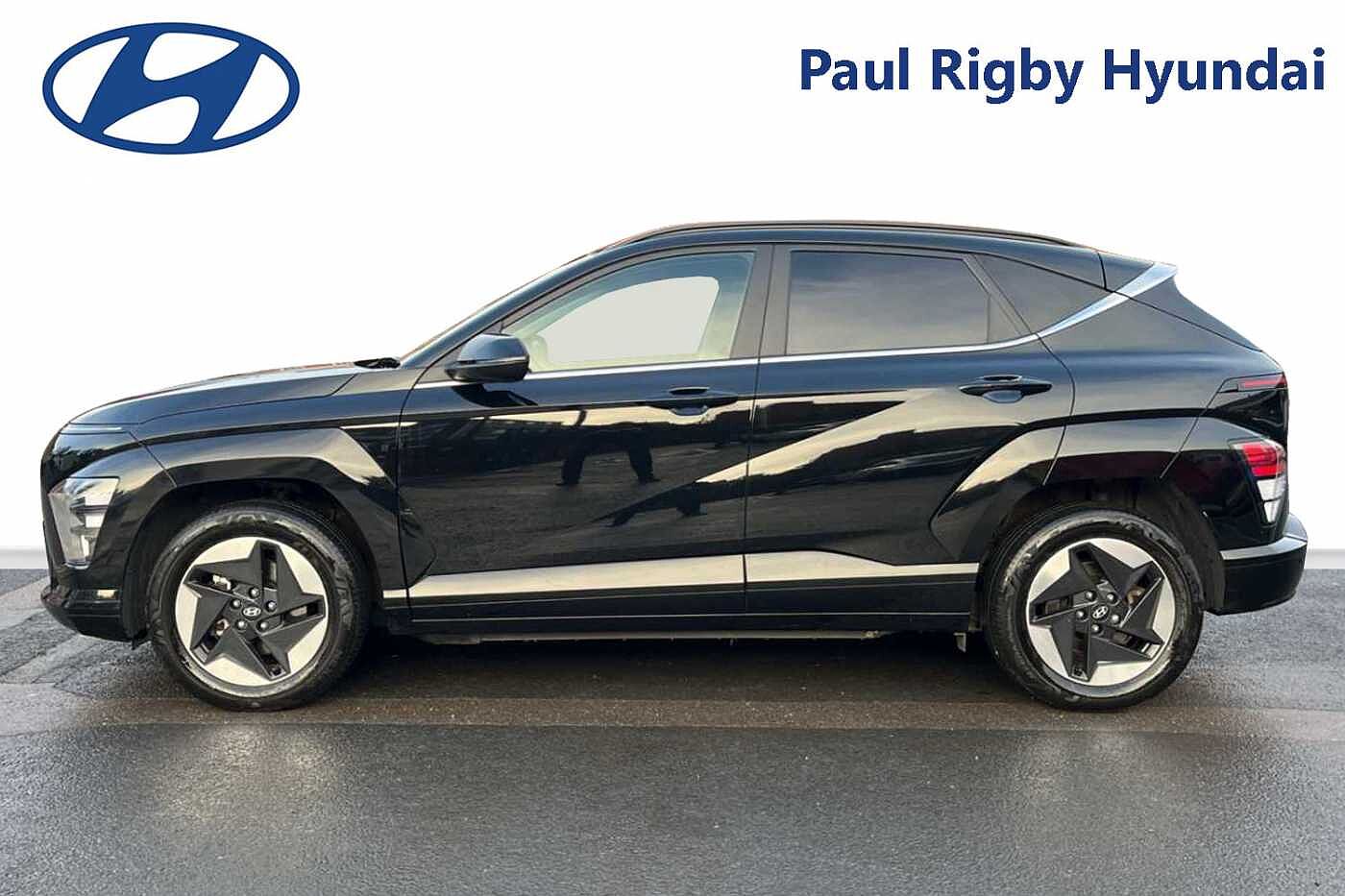Here at Paul Rigby Hyundai Bromsgrove, we are pleased to offer this stunningly prepared all new Kona Electric 65kWh Advance finished in the gleaming Abyss Black. This Kona Electric is fitted with the long range 65kWh battery that offers a range of 319 miles and an output of 218ps. The new Kona Electric offers a futuristic new look, an interior cabin that is spacious for all your adventures. Delivering a sporty acceleration, this model will do 0-62mph in 7.8 seconds for an exhilarating driving experience. Interior is fitted with a highly comfortable black cloth interior, drivers and front passenger seat are heated and also equipped with a heated steering wheel, perfect for winter. The boot space is a huge improvement from the previous Kona Electric, this comes in at a huge 466 litres. There is also added practicality with a front boot that has a space of 27 litres, for additional storage. Kona Electric sets a new standard within the subcompact SUV segment with fantastic smart technology as standard. Such as dual 12.3' screens for the driver's cluster and infotainment system, apple car play and android auto, front and rear parking sensors, rear guidance camera, smart cruise control with stop and go, lane keep assist, smartphone wireless charging pad, forward collision avoidance assist and many more.
