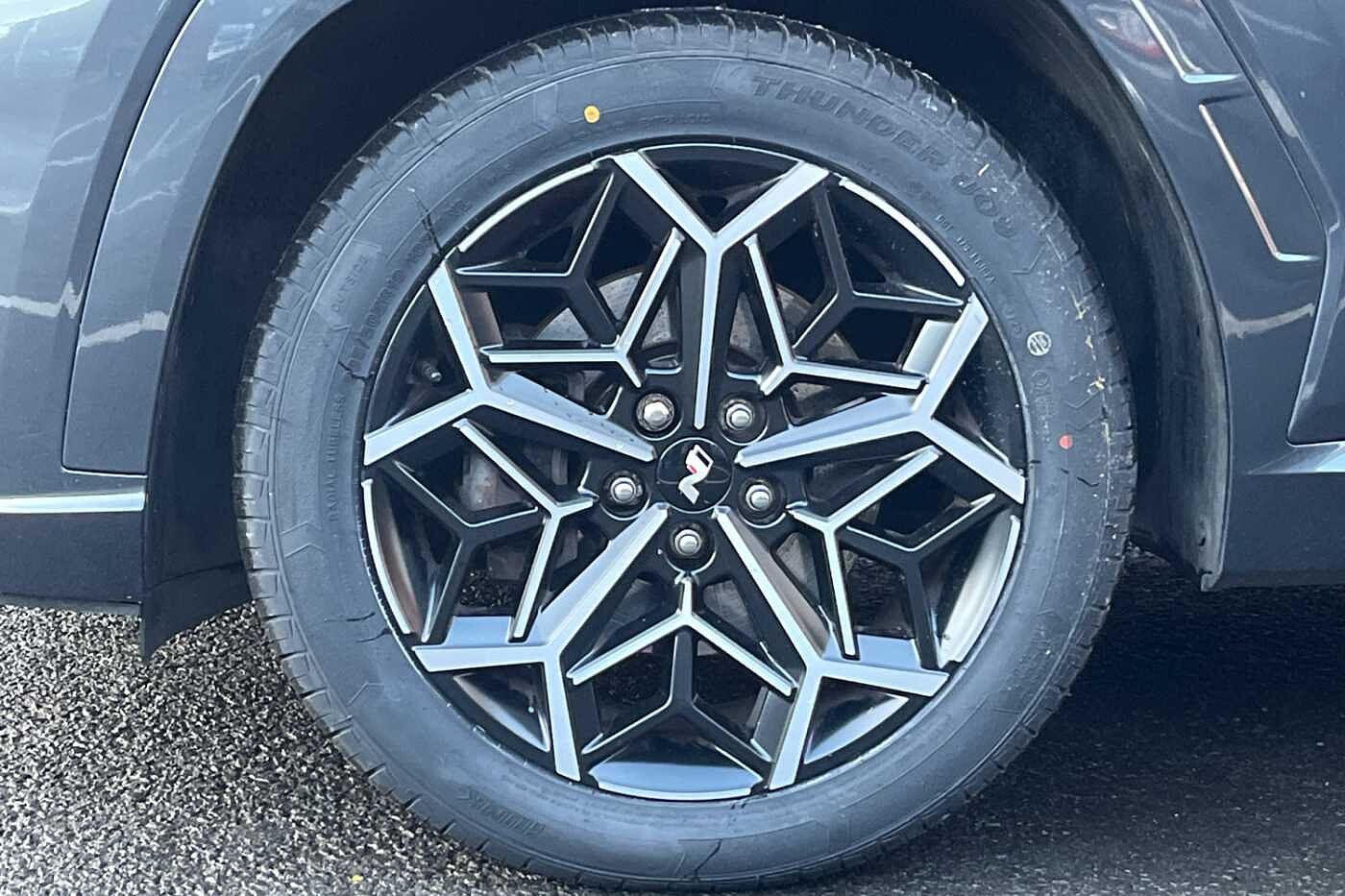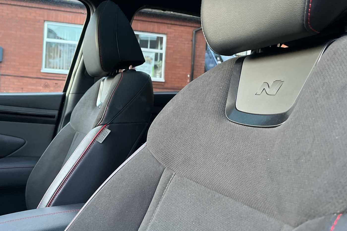 Here at Paul Rigby Hyundai Bromsgrove, we are proud to offer this stunningly prepared Hyundai Tucson N-Line S MHEV DCT finished in the gleaming Shadow Grey. This Tucson N-Line S has been given Hyundai's N treatment both on the exterior and interior. The exterior has the exclusive N-Line grille featuring a black N Line badge and black bezel framing the Tucson's distinctive headlights. The front bumper has sporty air intake refinements that takes the aggressive nature of the rectangular front bumper to all new heights. The side profile has matching colour mouldings that give the Tucson a dynamic slimmer look, moving onto the rear the sporty twin exhaust pipes have been added which fit perfectly with the style of the N-line rear bumper. The N-line Tucson is also fitted with exclusive 19 inch alloy's that completes the exterior. Moving onto the interior of the Tucson splashes of red N-line accents throughout the cabin, with the N-line sport seats featuring red stitching and N-line badging in the centre, which is also featured on the steering wheel. This specific Tucson N-Line S is fitted with a 1.6 T- smartstream petrol engine that produces 150ps and combined with a 48volt mild hybrid system that helps with efficiency. The N-line S Tucson still has the same excellent space and practicality as any other throughout the range with a highly adjustable drivers' seat for excellent visibility, plenty of rear passenger legroom and huge boot space of 616 litres that transforms into 1795 litre with the rear seats down. The N-Line S Tucson is fitted with Hyundai's latest smart tech and safety features such as lane keep assist, lane follow assist, rear guidance camera, apple car play and android auto, wireless smartphone charging pad, 10.25' digital drivers cluster, 10.25' infotainment system with navigation, drive mode selector, cruise control and many more.