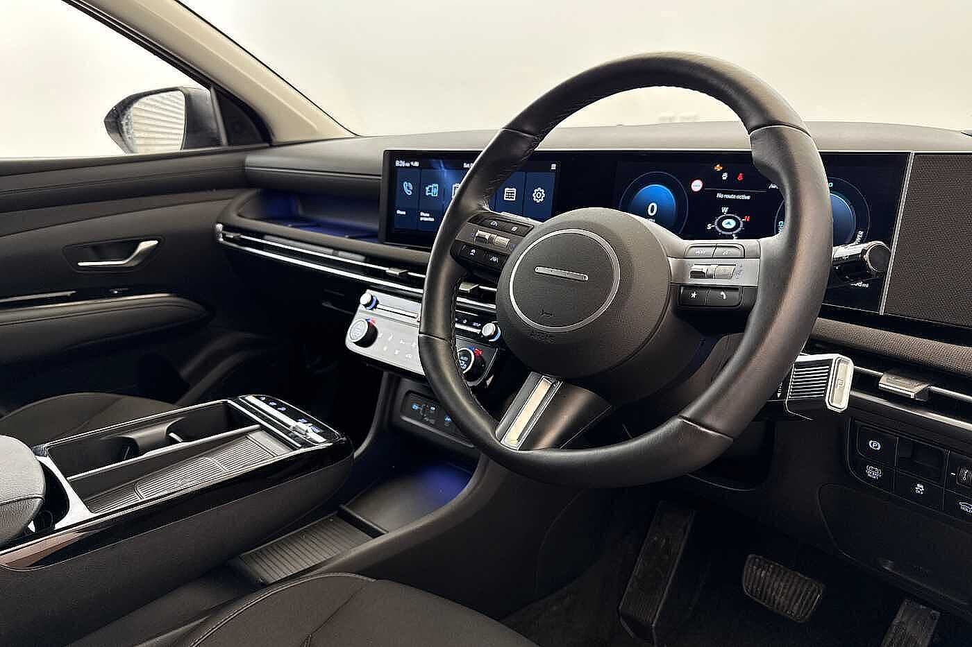 Here at Paul Rigby Hyundai Bromsgrove, we are proud to offer this stunningly prepared Hyundai Tucson Premium Hybrid for sale. Introducing the new Tucson for 2024, Hyundai have taken the already distinctive design of the Tucson and evolved it further for a cutting edge design. Not only has the exterior been tweaked but the interior has now been updated with Hyundai's latest technology including 12.3' dual panoramic curved display that seamlessly blends into the dash and redesigned centre console that allows for more cabin space and better functionality. The interior is fitted with luxurious black half leather seats that are heated all round. The rear passenger seats are spacious with lots of legroom, the highly practical boot of the Tucson measures in at 558 litres that transforms into 1737 litres with the rear seats down. The Tucson Premium Hybrid includes Hyundai's latest smart tech and safety features such as adaptive cruise control, rear guidance camera, front and rear parking sensors, lane keep assist, smart phone wireless charging pad, apple car play and android auto, dual 12.3' displays and many more.