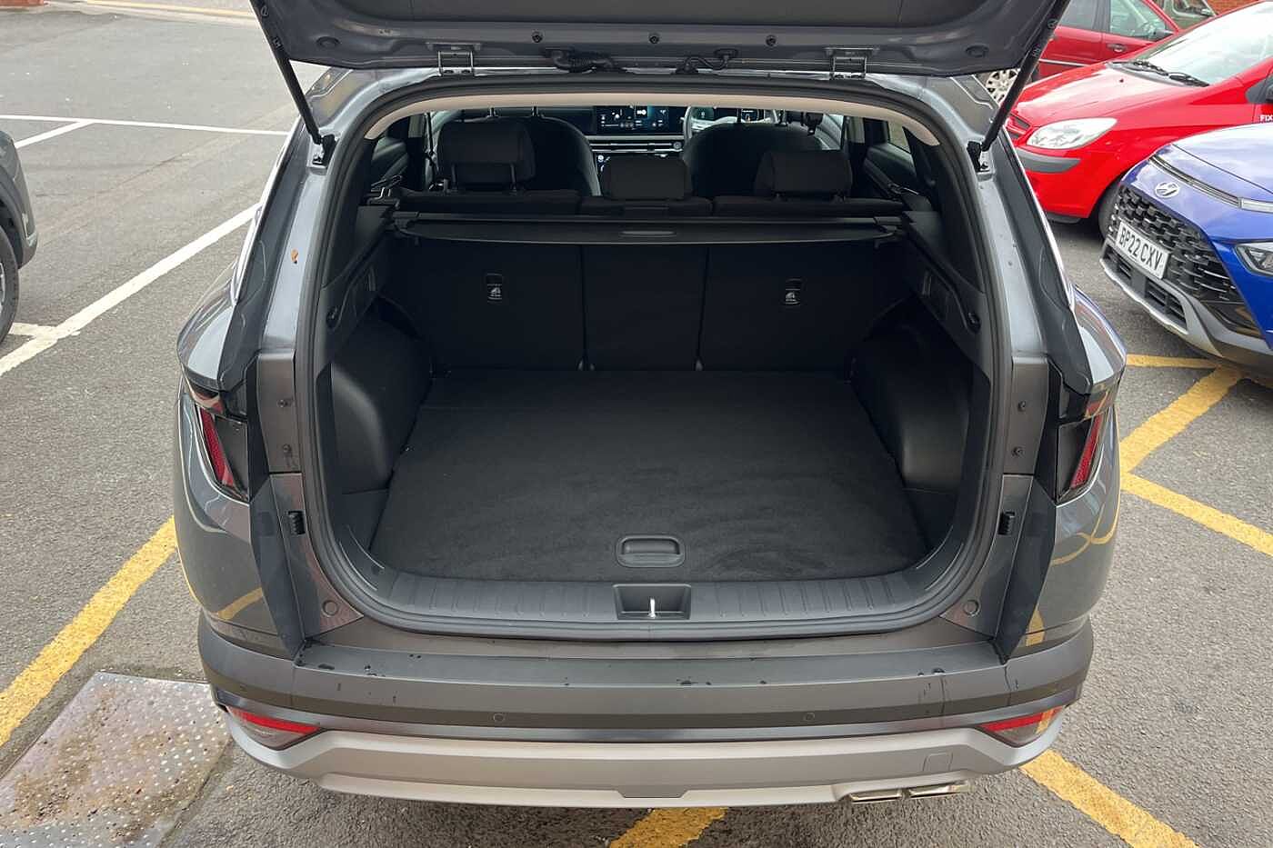 Here at Paul Rigby Hyundai Bromsgrove, we are proud to offer this stunningly prepared Hyundai Tucson Advance Plug In Hybrid finished in the sensational Ecotronic Grey. Introducing the new Tucson for 2024, Hyundai have taken the already distinctive design of the Tucson and evolved it further for a cutting edge design. Not only has the exterior been tweaked but the interior has now been updated with Hyundai's latest technology including 12.3' dual panoramic curved display that seamlessly blends into the dash and redesigned centre console that allows for more cabin space and better functionality. This Advance Hybrid Plug In model is fitted with the 1.6 T-GDI petrol engine and combined with a 72kW electric motor and 13.8kWh lithium-ion battery that produces a total output of 253ps. The Plug In has an EV range of 43 miles, offering the best of both worlds. The 38 mile charge is perfect for any short distance driving on a daily basis, but you have the flexibility of a self-charging hybrid when any long distance travelling is required. The rear passenger seats are spacious with lots of legroom, the highly practical boot of the Tucson measures in at 558 litres that transforms into 1737 litres with the rear seats down. The Tucson Advance Hybrid Plug In includes Hyundai's latest smart tech and safety features such as adaptive cruise control, rear guidance camera, rear parking sensors, lane keep assist, wireless apple car play and android auto, dual 12.3” displays and many more.